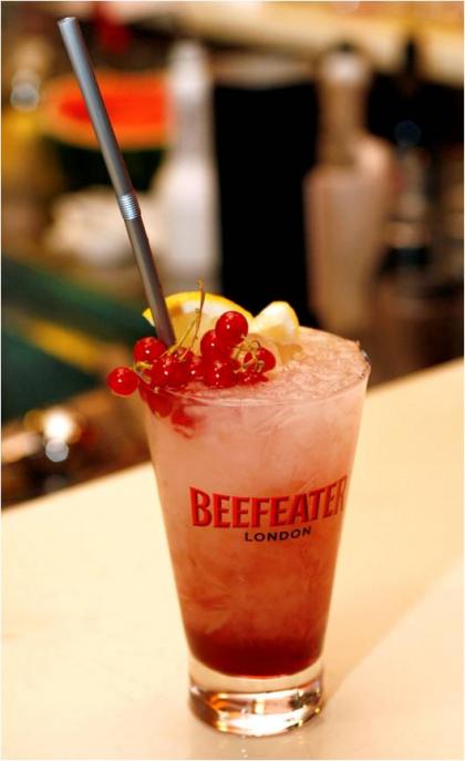 Kozarec napolnite z zdrobljenim ledom, nato pa preko njega prelijte vse sestavine.