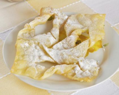 Spočito testo na tanko razvaljajte, s koleščkom razrežite na pravokotnike in v vsakega po sredini zarežite še dve ali tri zareze. Srednji pas dvignite, prekrižajte oz prepletite in zlato rumeno ocvrite v vročem olju.